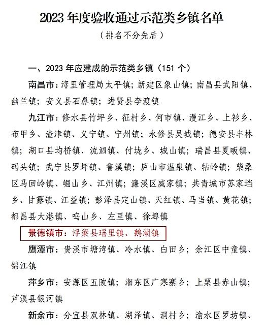 公布了2023年度验收通过示范类乡镇名单