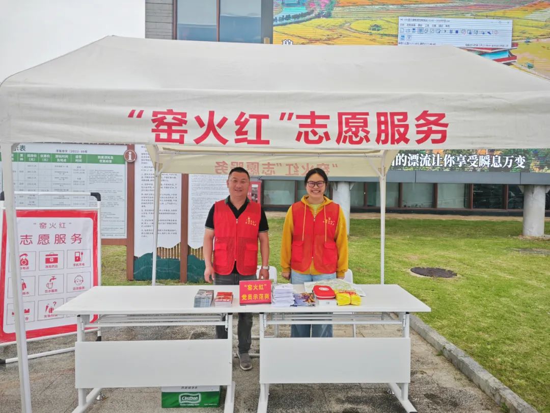 五一假期,鹅湖镇党委积极响应“窑火红”志愿服务活动的号召,在高岭·中国村和浮梁东站组织开展“窑火红”志愿服务活动,用一抹“窑火红”绘就五一假期最美风景。