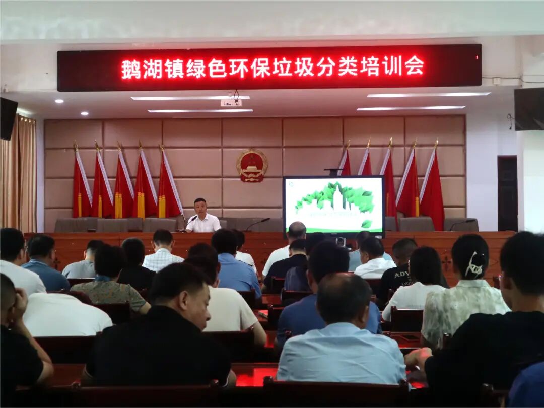 6月21日,鹅湖镇在文化站二楼组织开展绿色环保垃圾分类培训会。镇党委委员、人武部部长、副镇长朱进来出席。镇属各部门负责人参加会议。