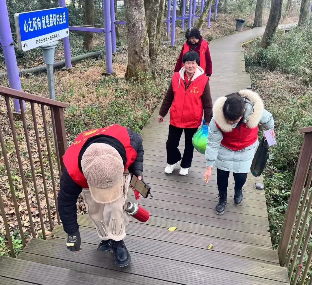 活动中,志愿者们身穿马甲,手提垃圾袋等工具来到高岭·中国村琅玕山步道,齐心协力清理步道及绿化带内白色垃圾、烟头等废弃物。同时边清理边过路的游客宣传环保理念,通过亲身实践树立良好的榜样,让更多人都能自觉履行文明公约,爱护环境,人人有责。