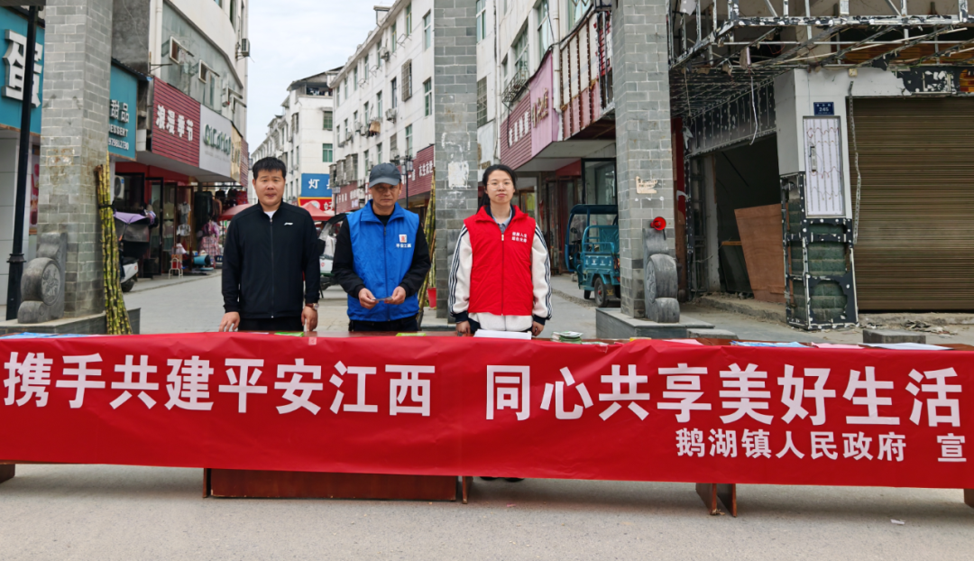 为进一步推进平安建设工作走深走实,增强全民参与平安建设的意识,4月7日,鹅湖镇平安法治办在鹅湖商业步行街开展“携手共建平安江西 同心共享美好生活”主题宣传活动。