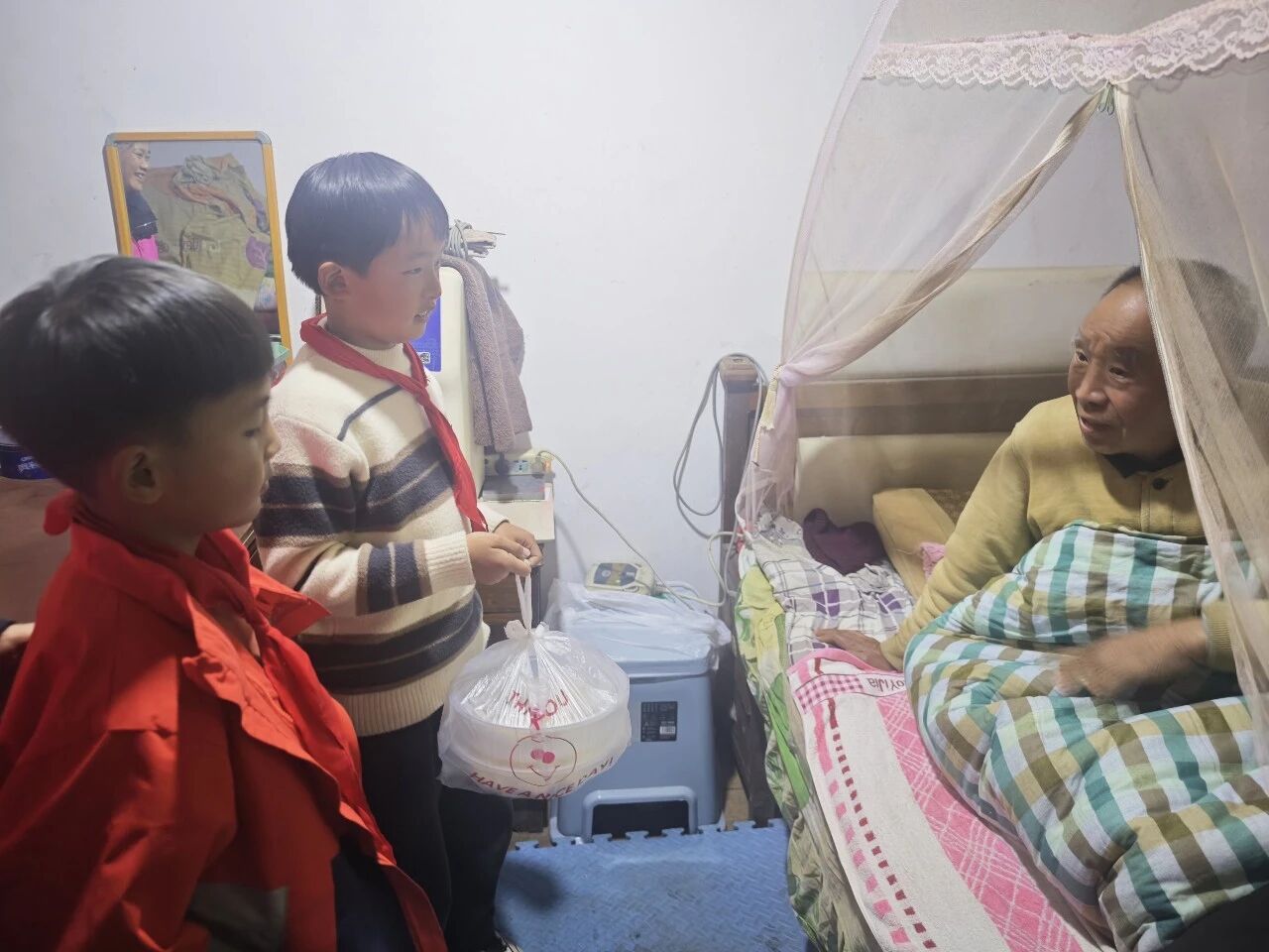 随后,小朋友们拿着现场做的水饺,跟着阿姨们来到独居老人童爷爷家,敲开门说“爷爷,冬至快乐!”,童爷爷接过水饺,笑着摸了摸小朋友的头:“谢谢你们,今天特别开心”。