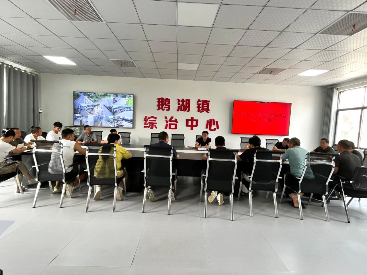 9月13日上午, 镇民生服务办应急部门召开鹅湖镇2024年受灾群众资金发放工作布置会。