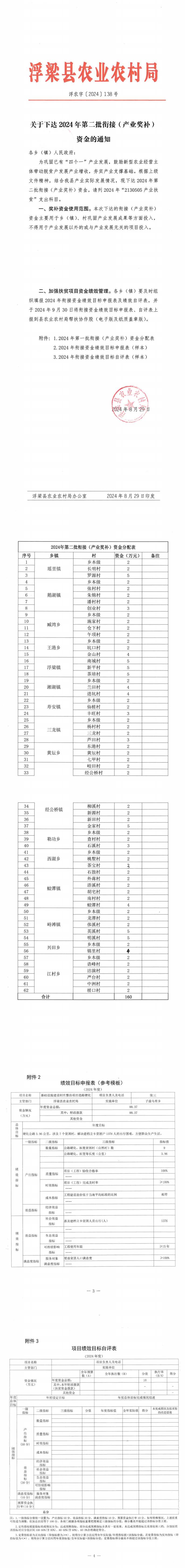 浮农字【2024】138号关于下达2024年第二批衔接(产业奖补)资金的通知
