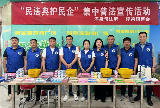 为深入贯彻落实习近平法治思想,深化民法典宣传实效,助力法治化营商环境,浮梁司法所联合浮梁镇商会于5月15日在浮梁县利客隆商贸有限公司开展“民法典进民企”集中普法宣传暨民法典宣传月宣传活动。