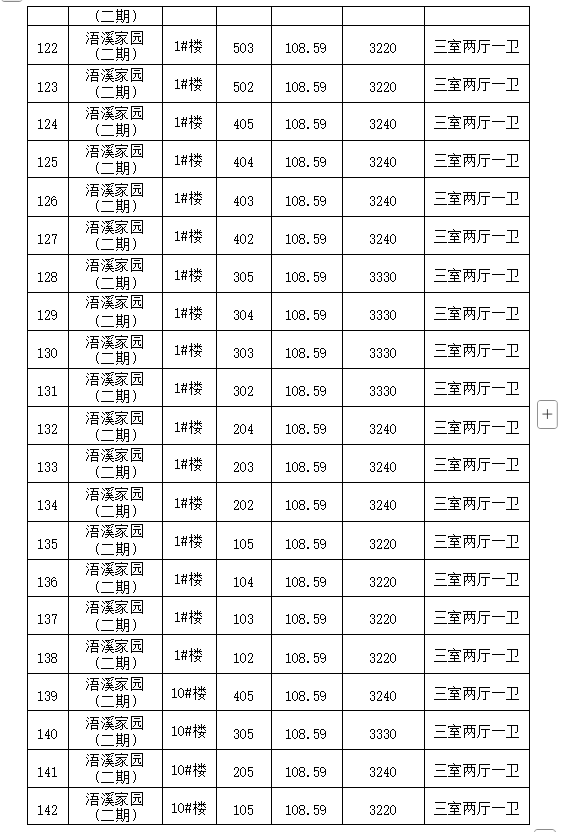 建筑面积101-120平方米左右三室两厅一卫户型房源114套;