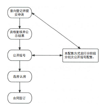 根据供需情况,采取摇号方式,面向申请家庭实行分阶段分批次摇号配售。