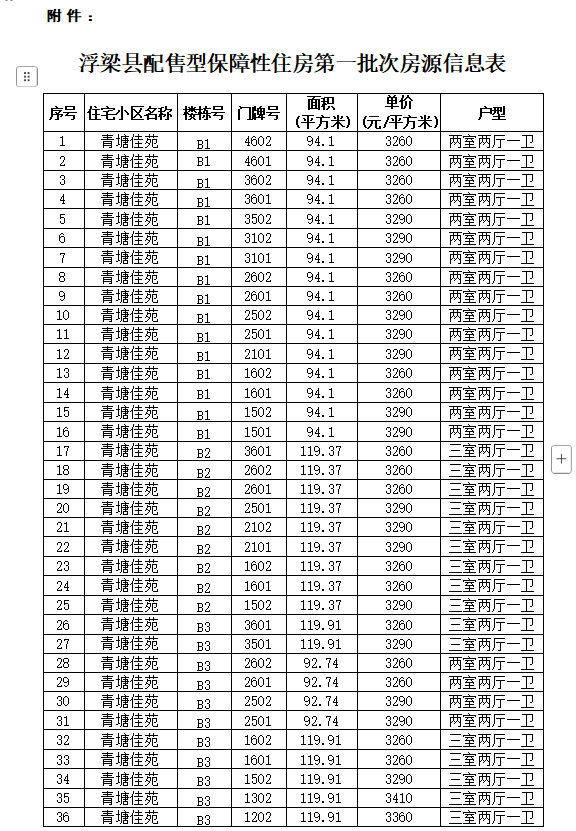 2.浮梁县配售型保障性住房第一批次房源信息表