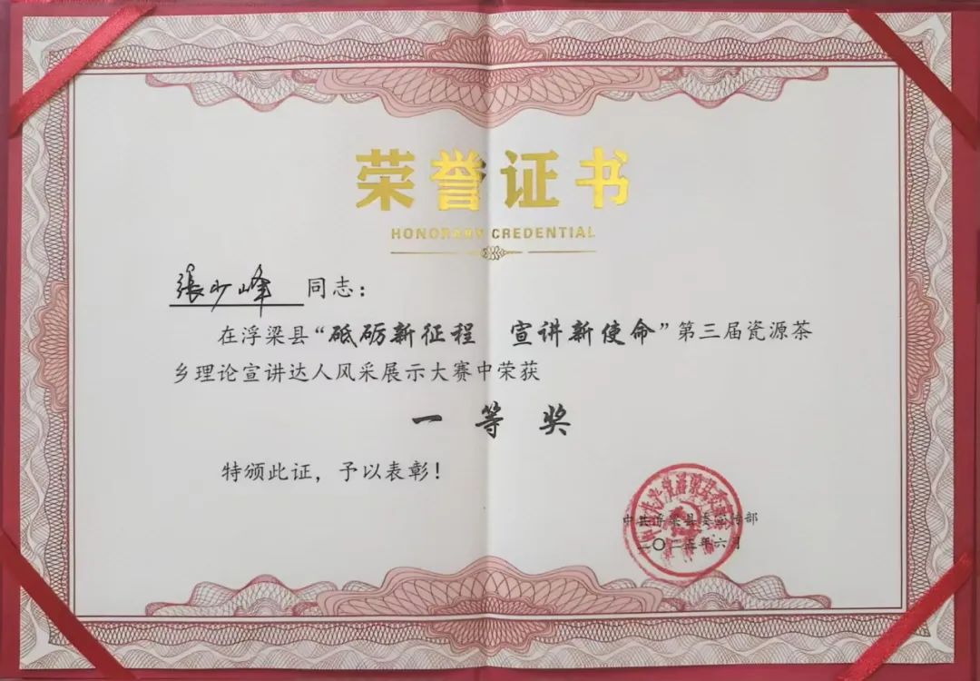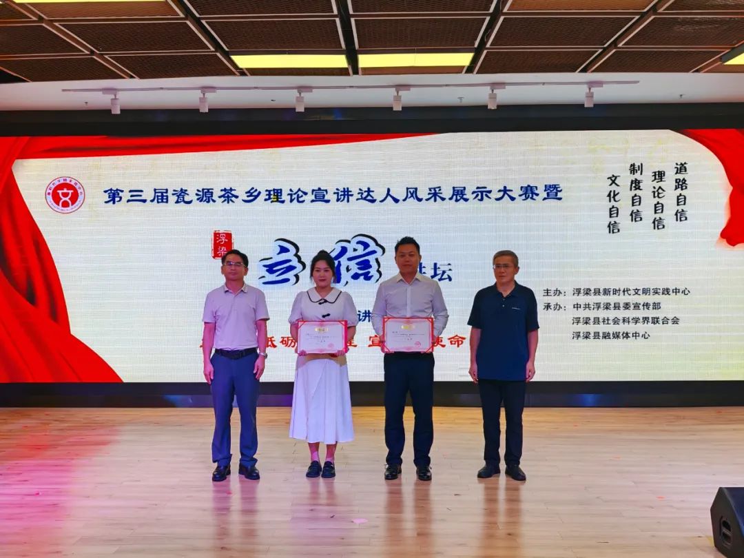 6月12日,浮梁县第三届瓷源茶乡理论宣讲达人风采展示大赛成功举办。比赛现场,黄坛乡青年干部张少峰以《山水为墨勾勒田园胜景,文旅作笔书写黄坛新篇》为题,用生动的语言与鲜活的案例讲述了黄坛乡立足生态资源禀赋,通过深挖文旅内涵、完善产业链条留住游客,推动农文旅融合发展,为乡村振兴提供实践样本,展现出了扎实的理论素养,深深打动了现场观众,荣获一等奖。