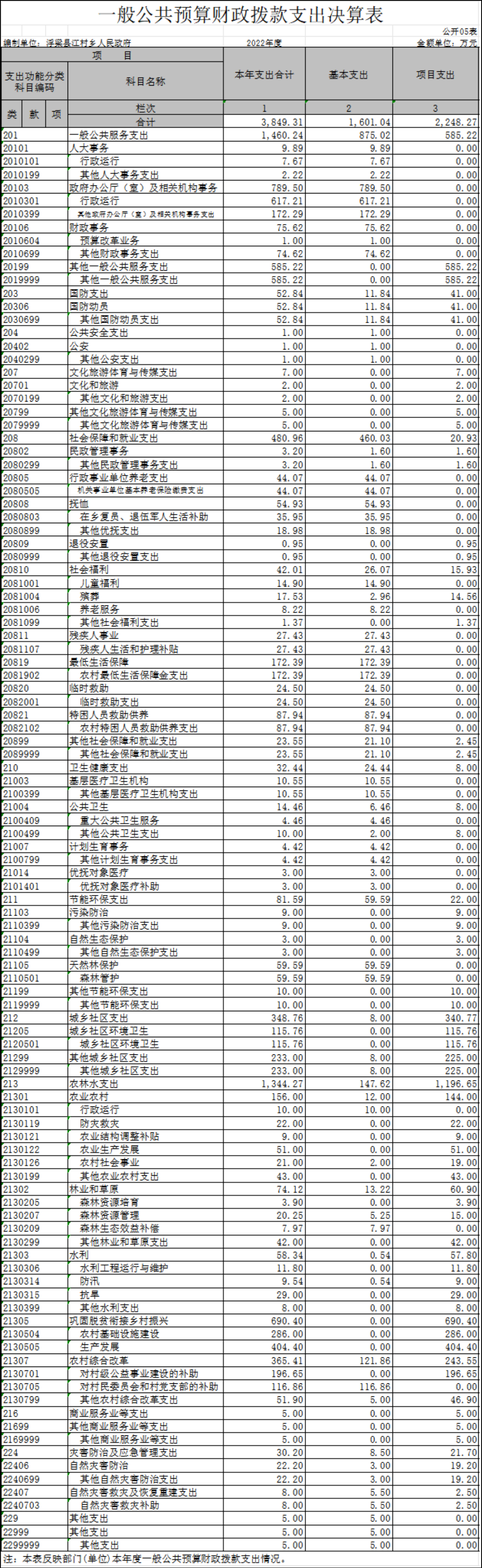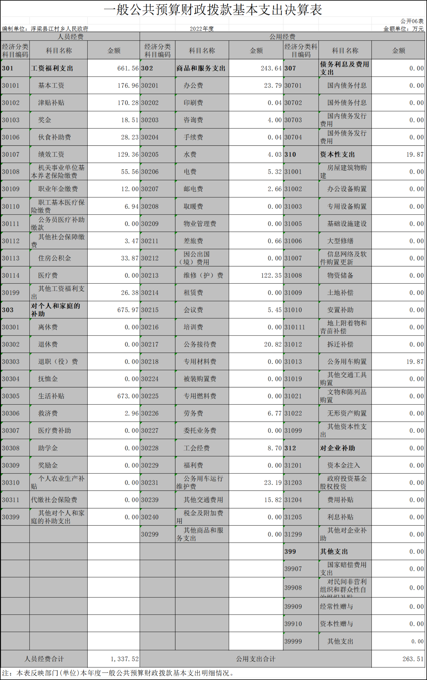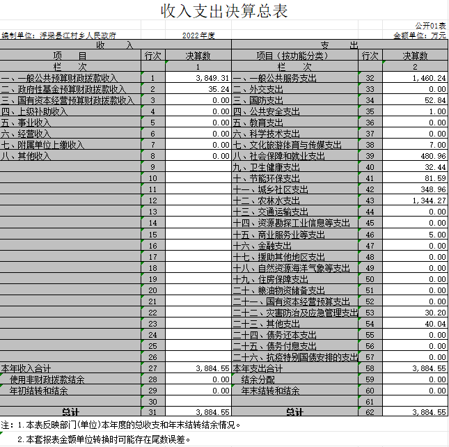 浮梁县江村乡人民政府部门2022年度部门决算