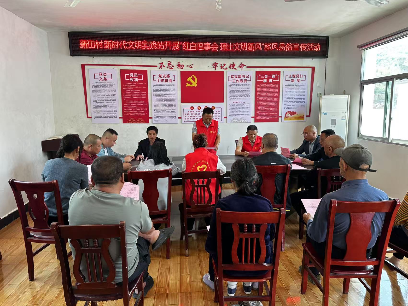 为推进乡村移风易俗,破除陈规陋习,培育健康向上、科学文明的生活方式和社会风尚,5月12日,经公桥镇新田村新时代文明实践站开展“红白理事会 理出新风尚”主题宣讲活动。