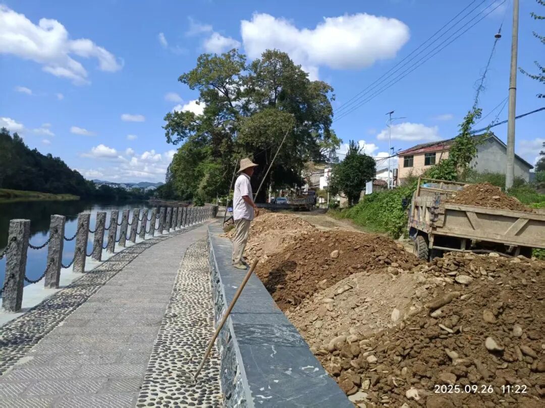 ●9月26日,沧溪村对沿河游步道开展环境整治工作。