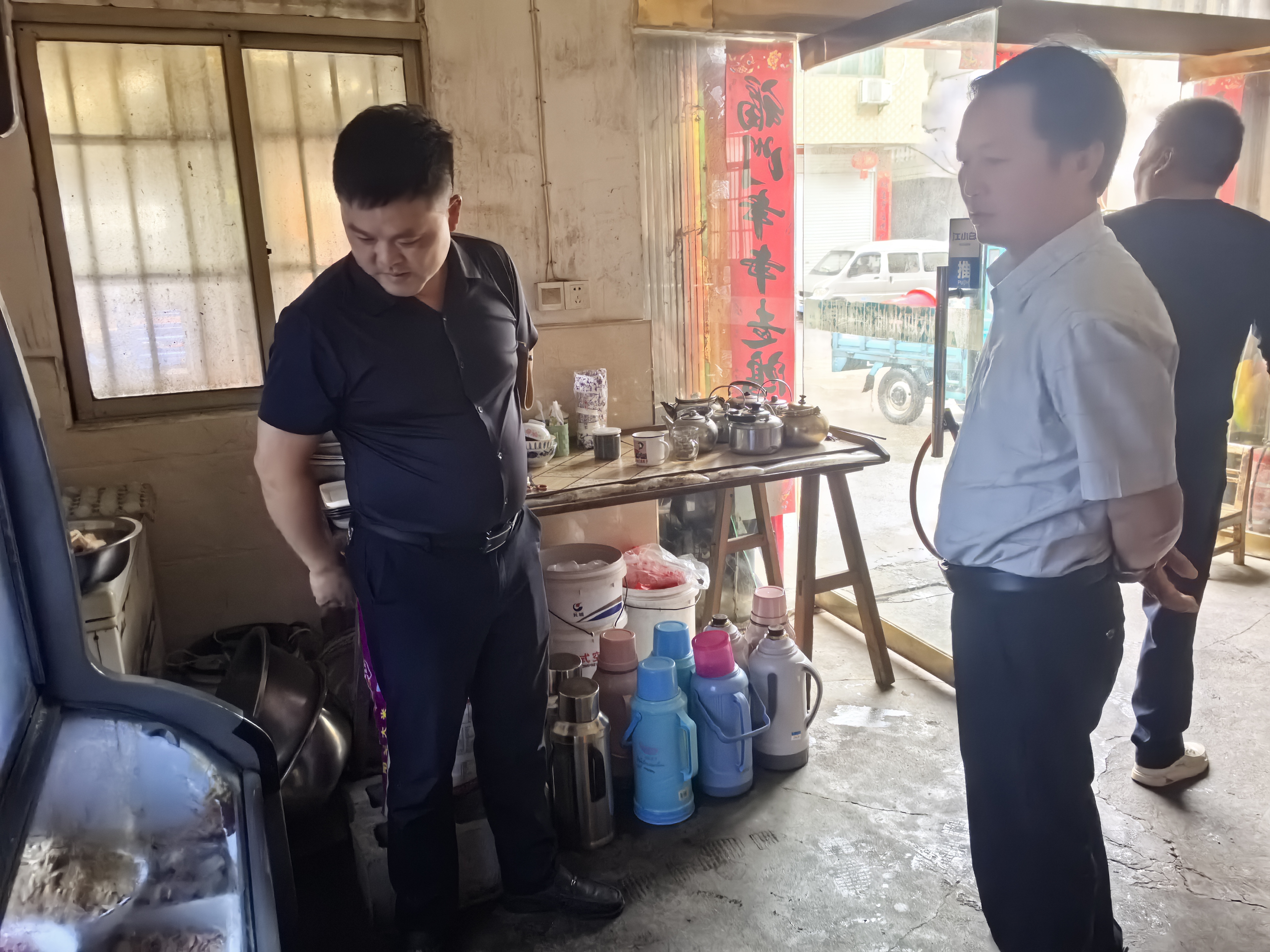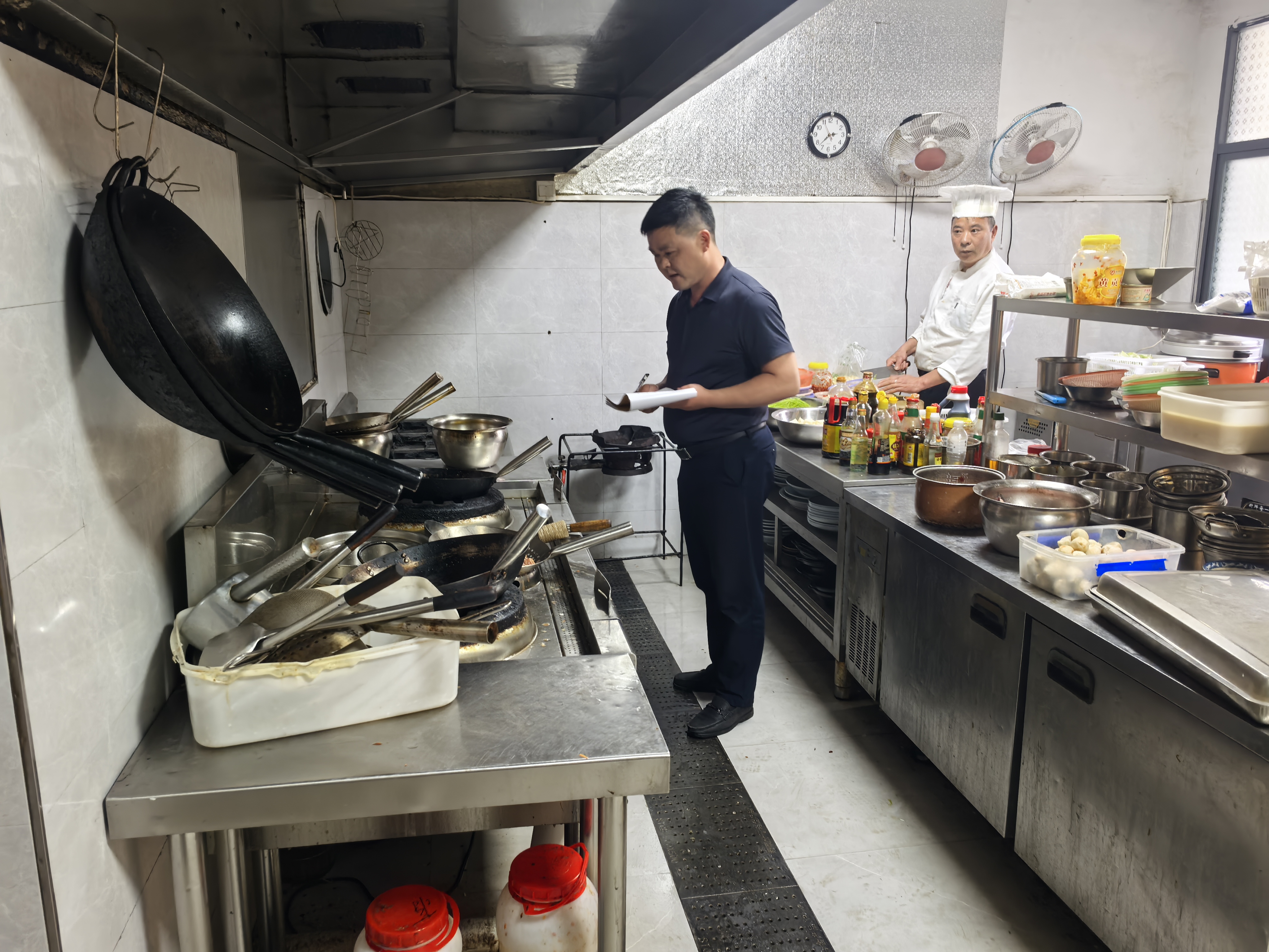 勒功乡人大主席范响峰带领综合执法、住建、应急、市监部门对乡餐饮单位和民宿进行节前食品安全、燃气安全、禁食野生动物等工作检查。