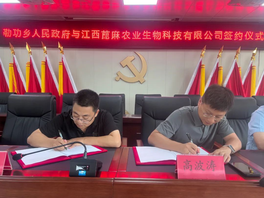 近日,勒功乡人民政府与江西省蓖麻农业生物科技有限公司在乡政府三楼会议室举行了签约仪式。仪式由乡党委委员、常务副乡长余亮主持,乡党委副书记、乡长高波涛,江西省蓖麻农业生物科技有限公司法定代表人李贵民出席仪式,乡经济发展办、双峰林场、勒功村负责人参加仪式。