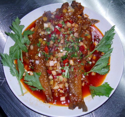 取浮梁山间清水小鱼,稍作晒凉,油炸后加冷水煮一、二十分钟,再配之生姜、大蒜、红辣椒,口味极其鲜嫩
