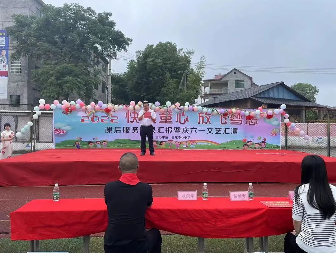 2022年6月1日是第72个国际儿童节,三龙镇中心学校举行庆“六一”文艺汇演。三龙镇党委副书记、镇长黄城坚出席活动并致辞。