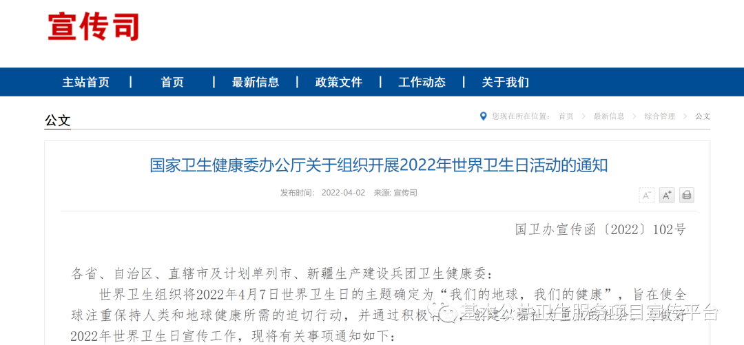 日前,国家卫健委印发通知,要求做好2022年世界卫生日宣传工作——
