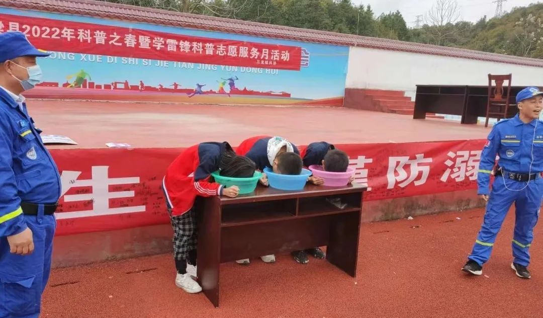 浮梁人防蓝天救援队与同学们做憋气游戏