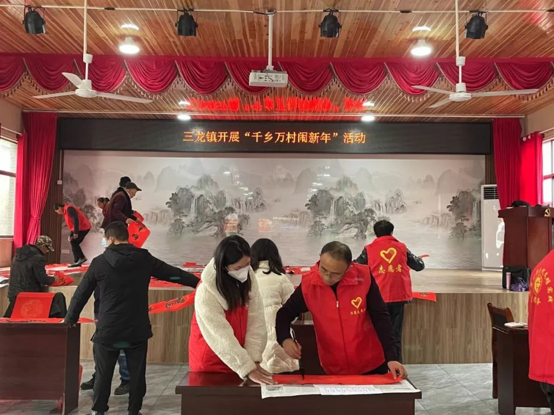 为深入贯彻落实党的二十大精神,弘扬中华民族“迎新春、贴春联”的优良传统文化,丰富和满足广大群众文化精神生活,营造欢乐祥和的节日氛围,省文旅厅在全省组织开展2023年江西省“千乡万村闹新年”基层文化惠民活动。按照活动要求,三龙镇邀请了二十多位市、县书法家及老师们开展镇、村“千乡万村闹新年”、“迎春纳福送春联 浓浓墨香暖人心”等活动。镇、村干部将对联送入脱贫户、困难群众家中。此次活动共送出春联500余副。