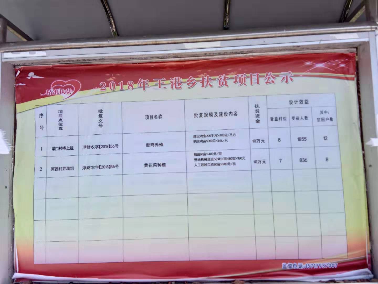 2018年王港乡扶贫项目公示
