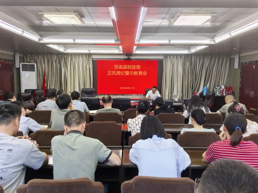 近日,浮梁县财政局召开正风肃纪警示教育会,局党组书记、局长吴明主持并讲话,全体干部职工参加。