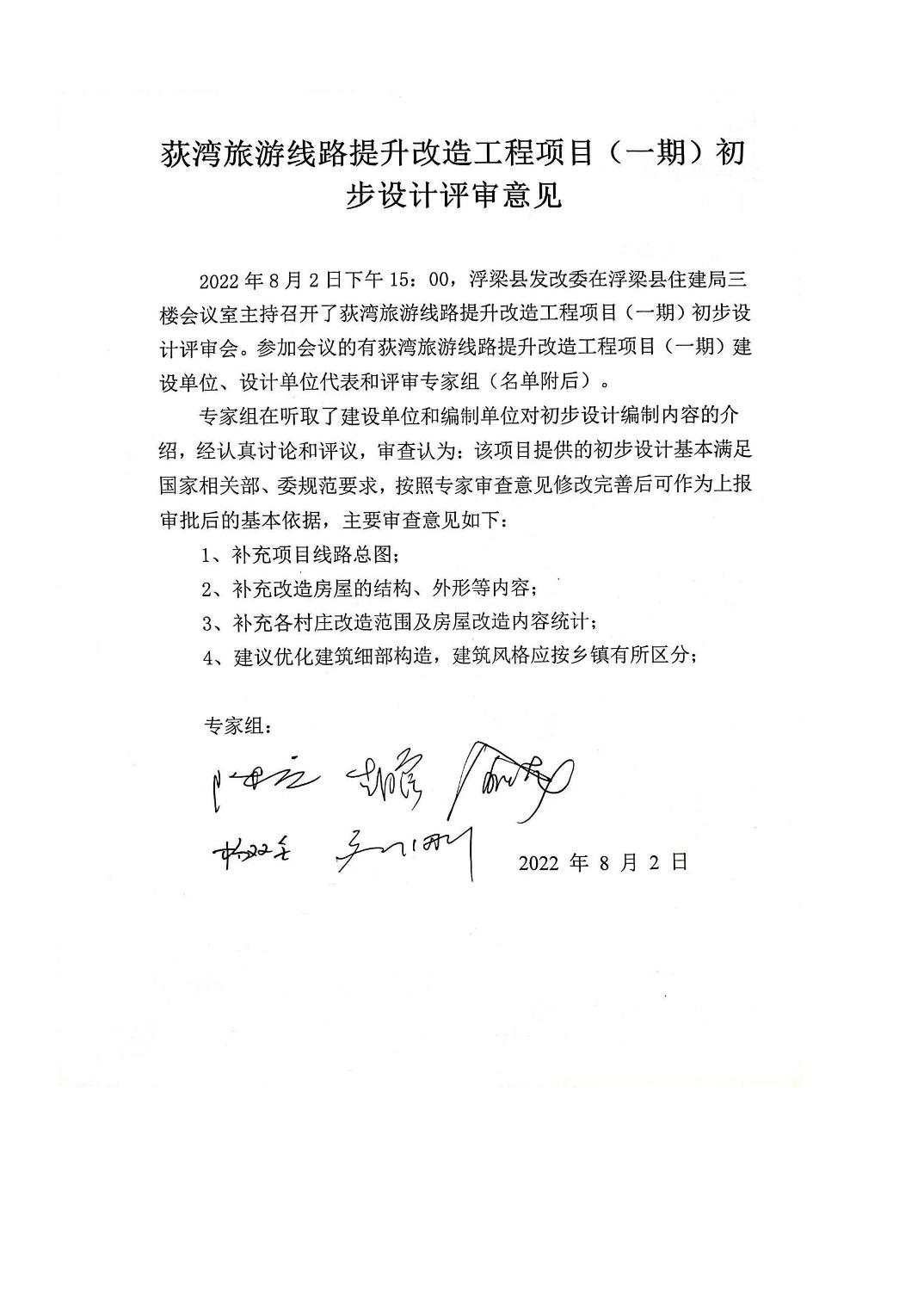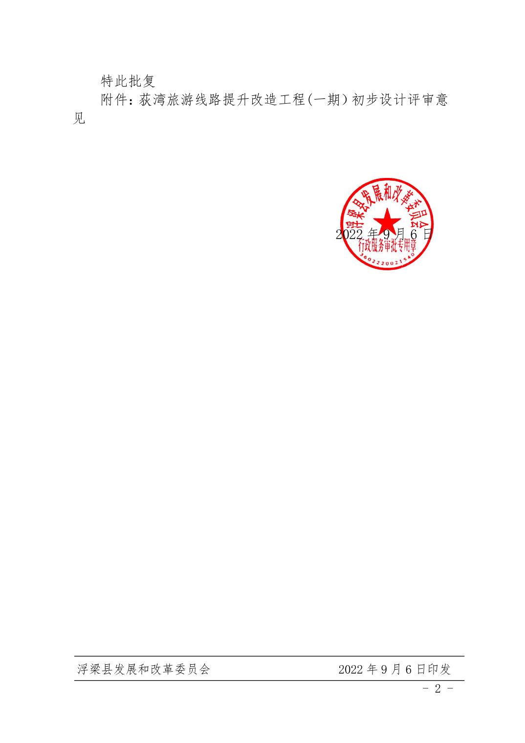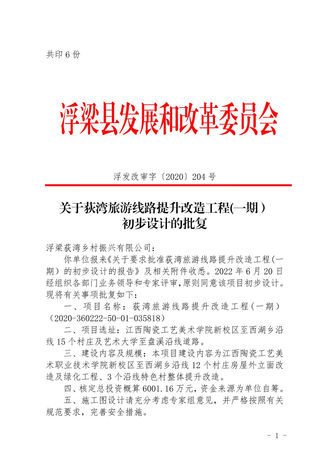关于荻湾旅游线路提升改造工程(一期)初步设计的批复(204号)