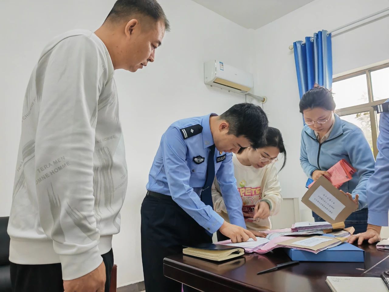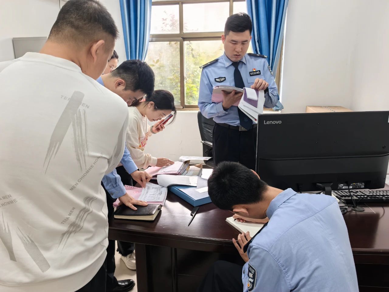"我们养老院不存在预存返利的情况吧?"4月23日,在浮梁县浮梁中心敬老院财务室,经侦大队民警向敬老院负责人讲解财务管理规范。这是浮梁县公安局经侦大队联合县民政局、政府办开展养老机构专项排查的现场画面"。