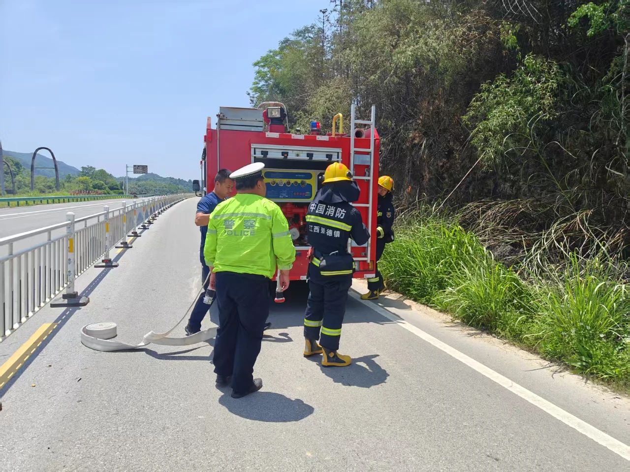 5月13日,浮梁县公安局交警大队鹅湖中队民辅警在辖区巡逻时果断处置一起突发火情,及时消除安全隐患,守护了群众生命财产安全。