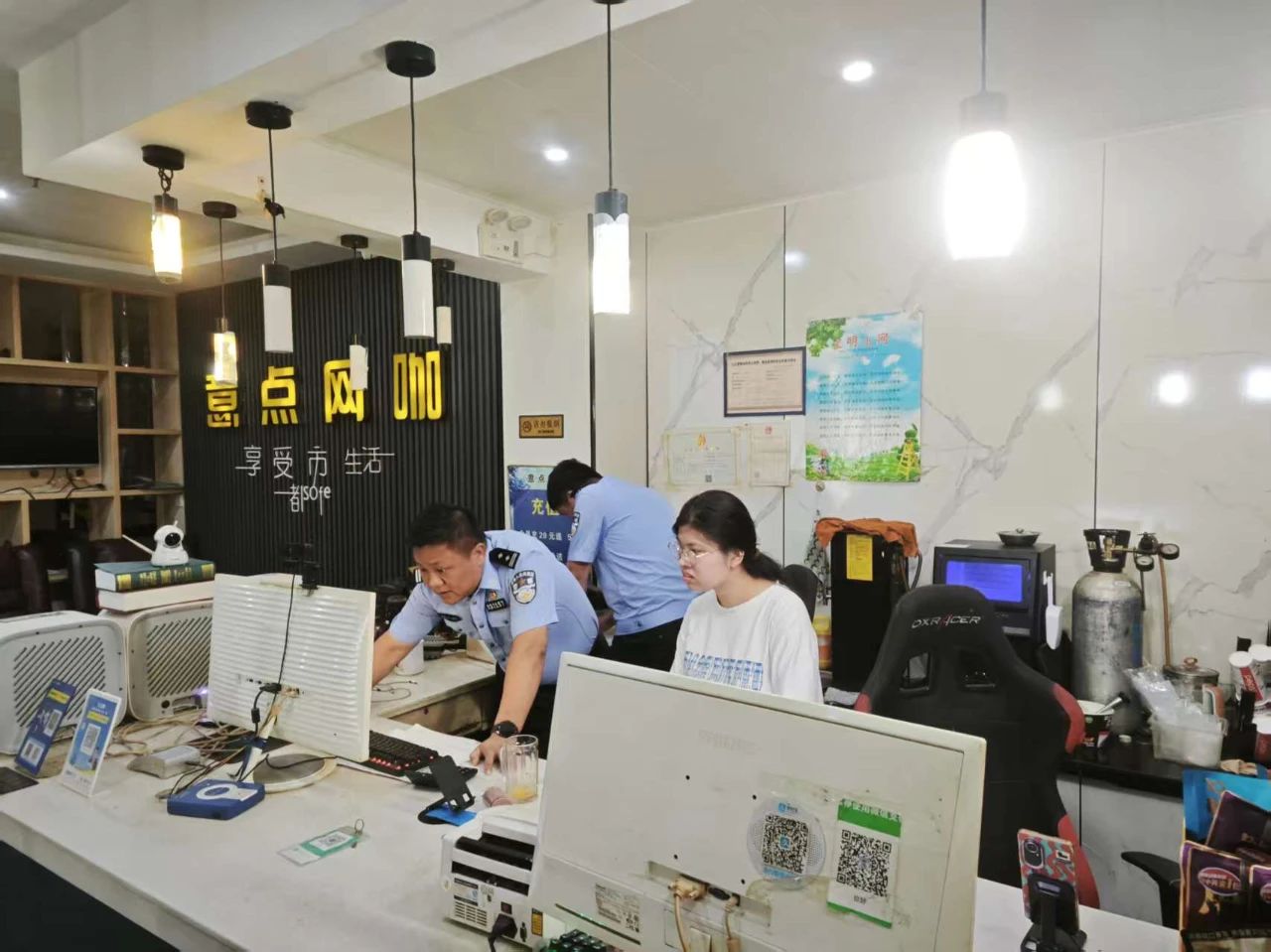 在全省公安机关夏夜治安巡查宣防集中统一行动中,浮梁县公安局网安大队迅速响应、主动作为,对辖区内6家网吧开展全方位例行检查,以实际行动织密夏夜安全防护网。