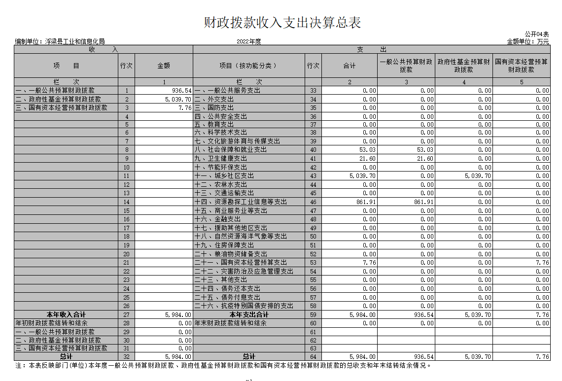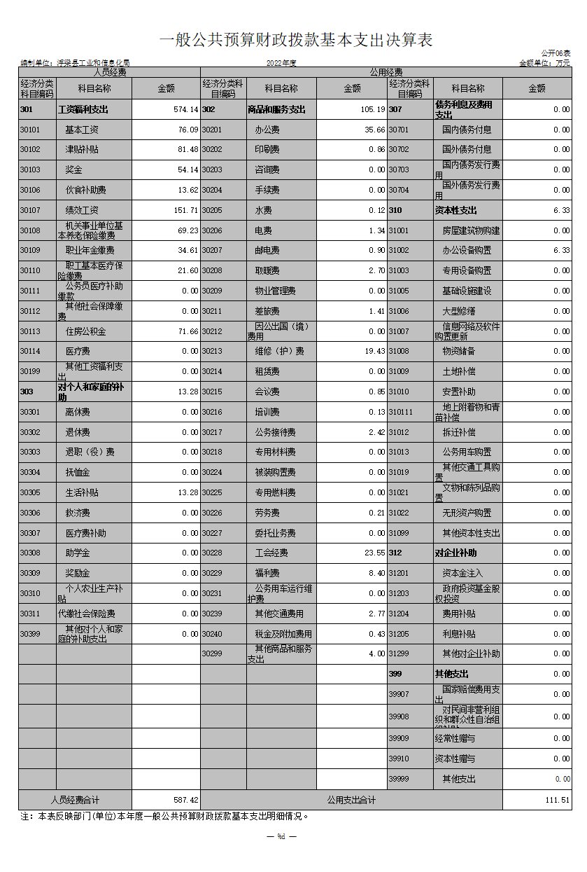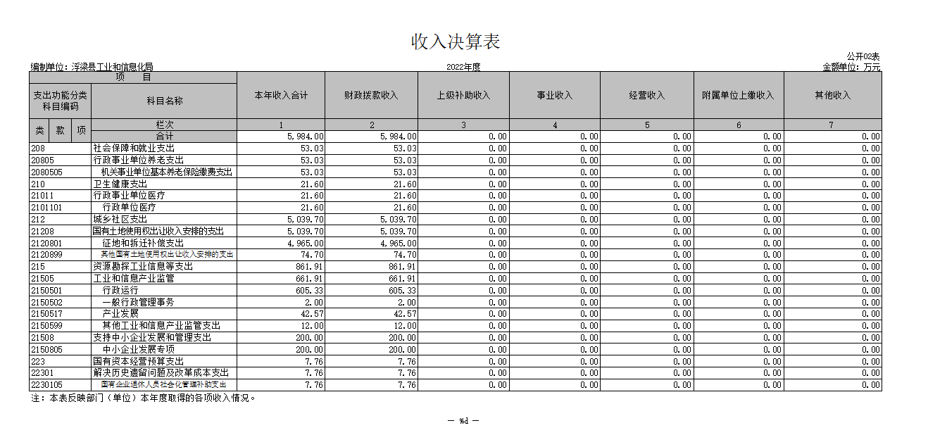 县工信局单位2022年度决算公开