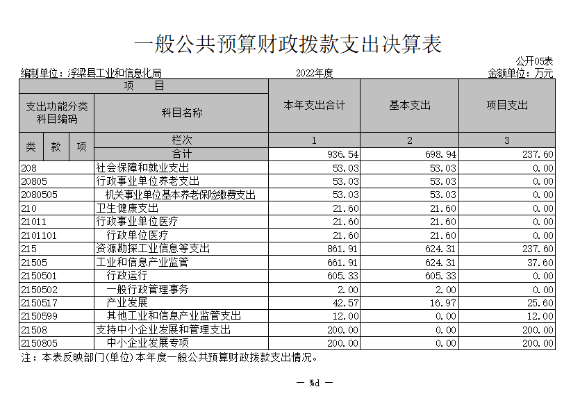 2022年度县级单位决算公开格式: