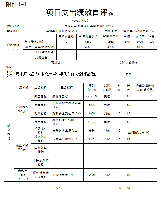 将2022年度《项目支出绩效自评表》(自选1个项目)进行