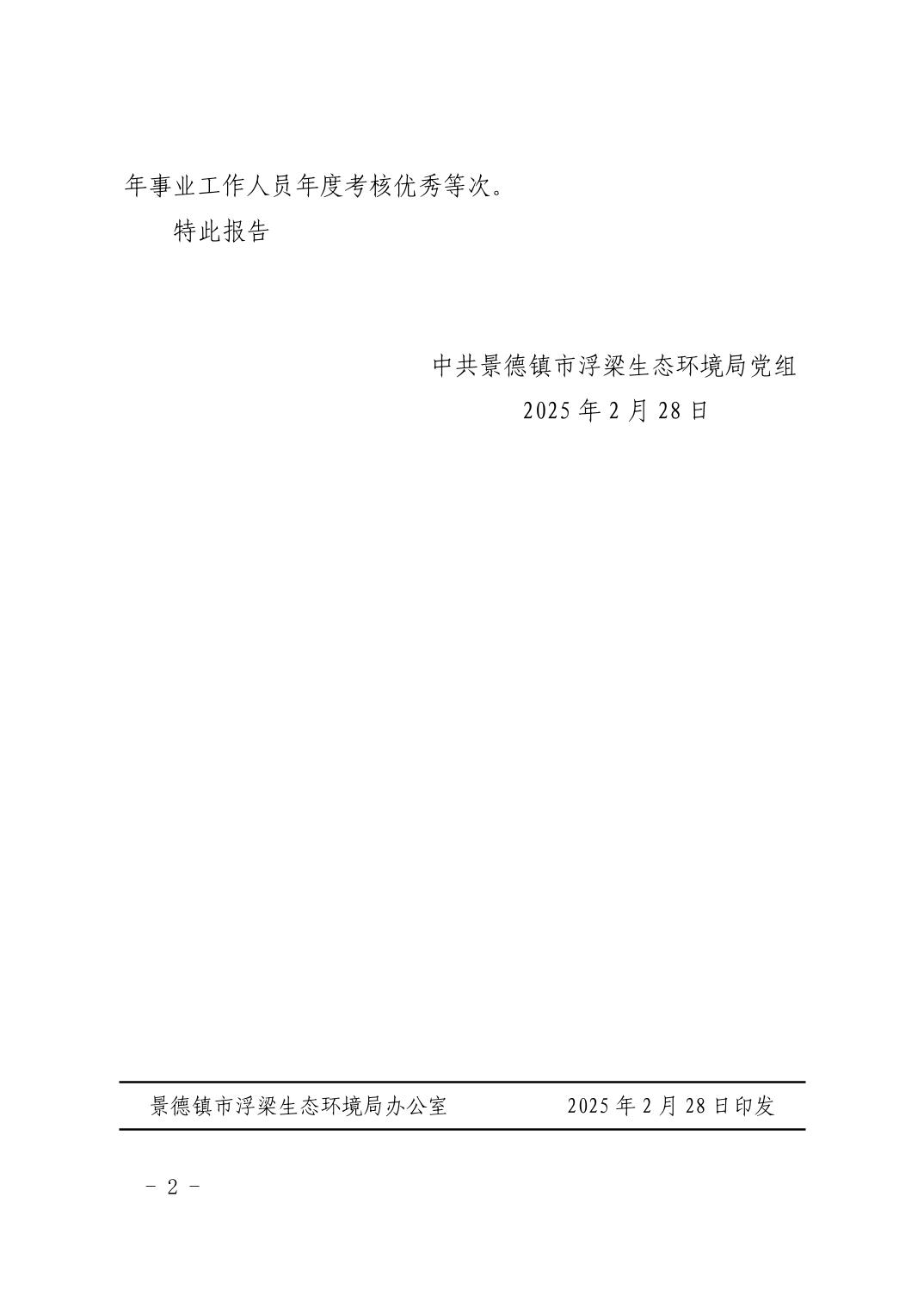关于景德镇市浮梁生态环境保护综合执法大队2024年事业工作人员年度考核情况的报告