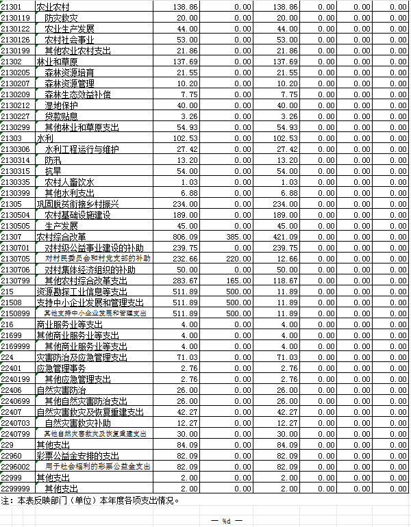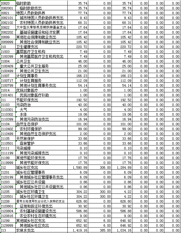 (九)农林水支出1419.2万元(其中农业支出138.9万元、水利支出102.5万元、林业支出137.7万元、扶贫支出234万元、农村综合改革806.1万元);