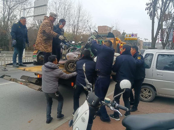 整治行动中,综合行政执法队队员对湘湖镇陶瓷大学对面的电动车门店进行摸底调查,多次上门与商户商谈解决方案,逐户上门宣讲,劝导经营商户文明规范经营,严禁出店占道经营、占道维修。此次行动规范电动车门店4户,对行动缓慢、不听劝阻、持续占道经营、车辆乱停乱放的商户下达整改通知,托运僵尸车辆80余辆。