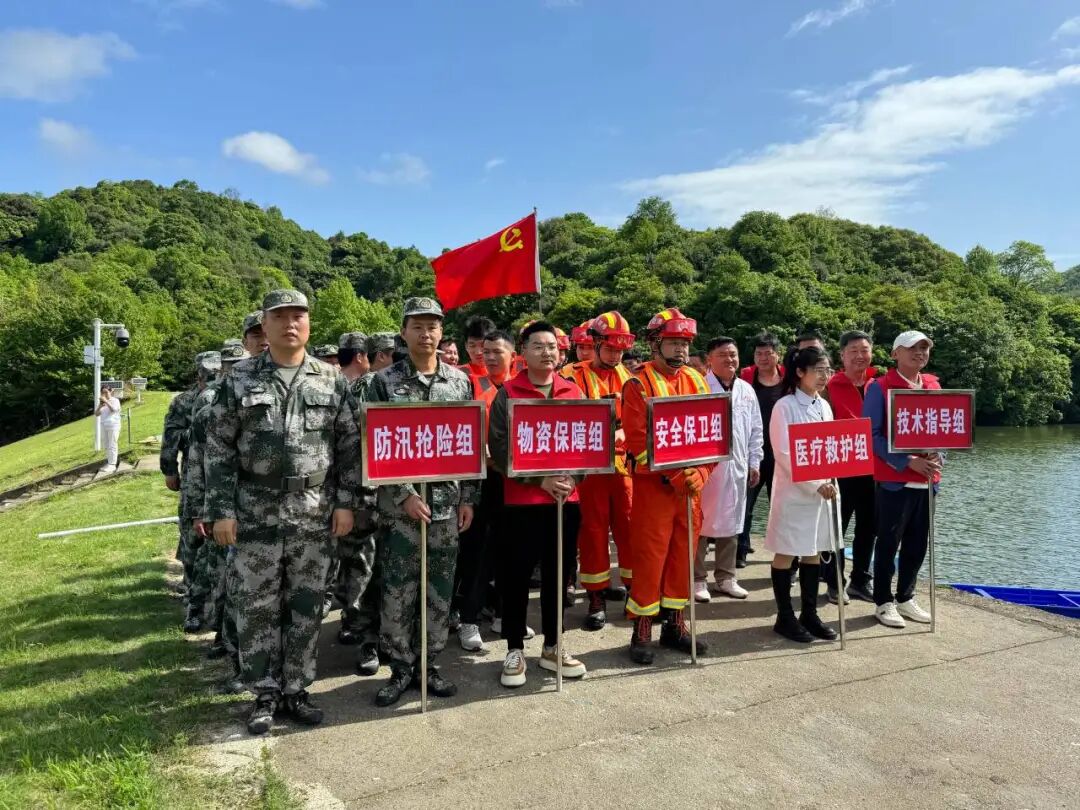 汛期已至,雨水渐多。为进一步我镇提升防汛抢险救灾实战水平和应急处置能力,最大限度防范化解灾害风险,确保人民群众生命财产安全。4月18日,湘湖镇防汛抗旱指挥部按照“早谋划、早准备、早部署、早落实”原则,组织应急、水利、基干民兵、专职消防队、党员志愿者、卫生院及部分群众等40人在洞口村大坞水库开展2024年防汛应急抢险演练。