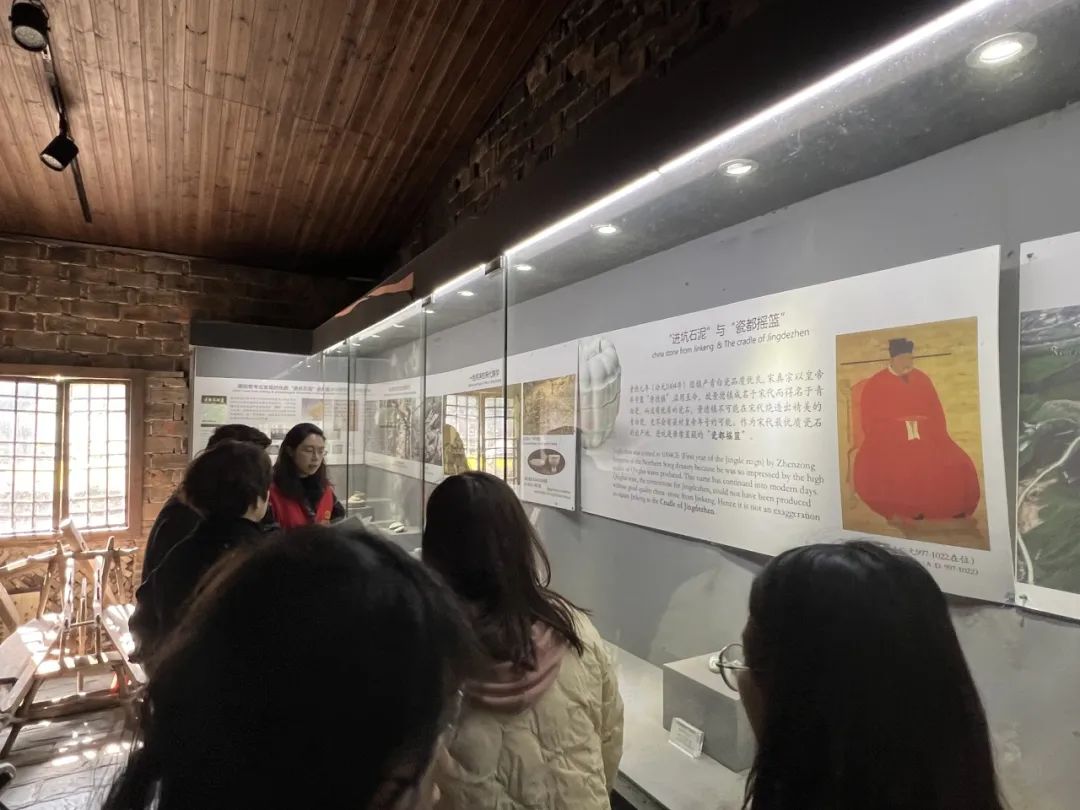 活动首站来到进坑村村史馆。馆内陈列的出土陶瓷碎片、古窑工具和村志图片,无声诉说着进坑这片土地与陶瓷文化的羁绊。展柜前,“湘小虎”志愿者化身“文化讲解员”,从进坑“水土宜陶”的传奇讲到制瓷工艺的精妙,从“进坑石泥”的瓷土出产历史讲到宋代青白瓷的器物精良,大家踮脚细看瓷片纹路,驻足倾听了解进坑瓷业历史,仿佛置身于制瓷史的长河之中,感受着岁月的沉淀与传承。现场村民感慨道:“以前总嫌这些旧物件占地方,后来是真真切切地意识到它们是我们村的‘活历史’啊!”