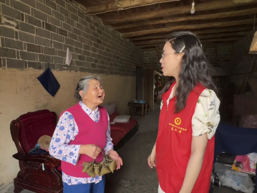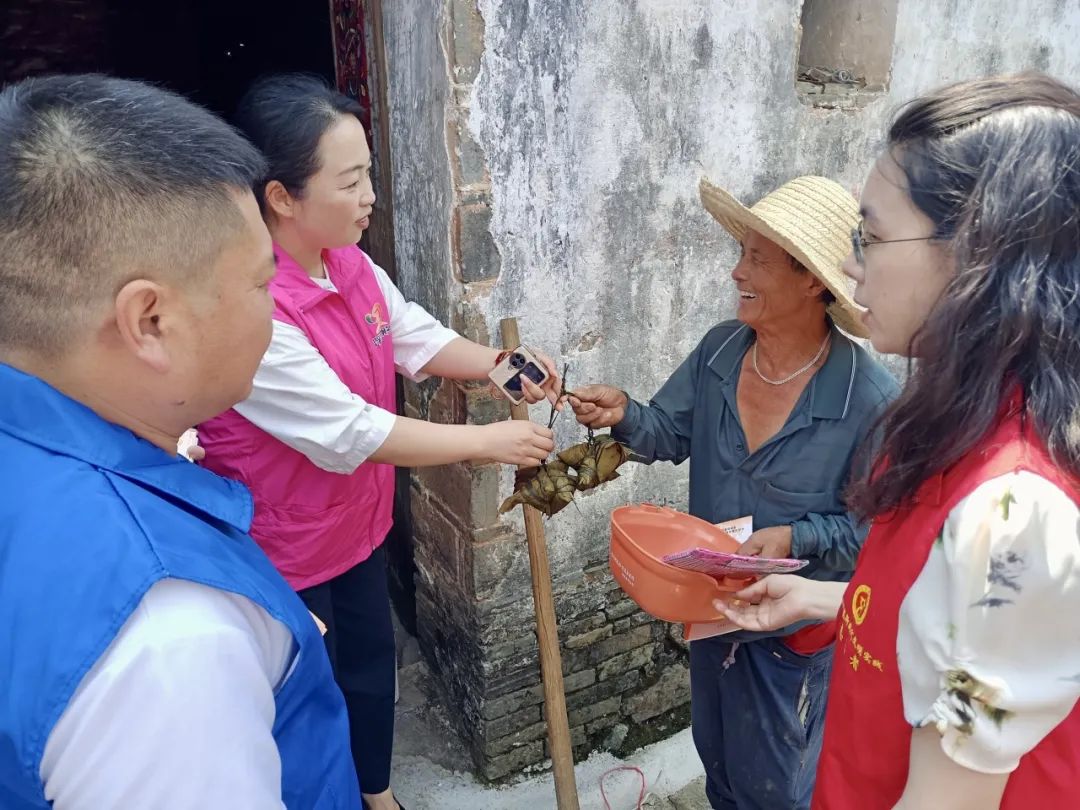 “大爷,这是我们自己包的粽子,您尝尝合不合口味?祝您端午安康!”包粽子活动结束后,村委会工作人员和志愿者组成“送福小分队”,将刚煮好的粽子送到独居老人、困难家庭家中。每到一户,志愿者不仅递上香甜的粽子,更化身“文化小老师”,向村民介绍端午节的传统习俗。“您看这艾草,不仅能驱虫避疫,更寄托着驱邪避灾的美好寓意……”从悬艾草的防疫智慧,到五彩绳的吉祥寓意,志愿者边入户边科普,讲述端午节悬艾草、挂钟馗像、戴五彩绳、洗端午浴等习俗背后的文化故事,并送上节日的祝福,让村民在品尝粽子香甜的同时,感受到端午佳节的浓厚氛围。