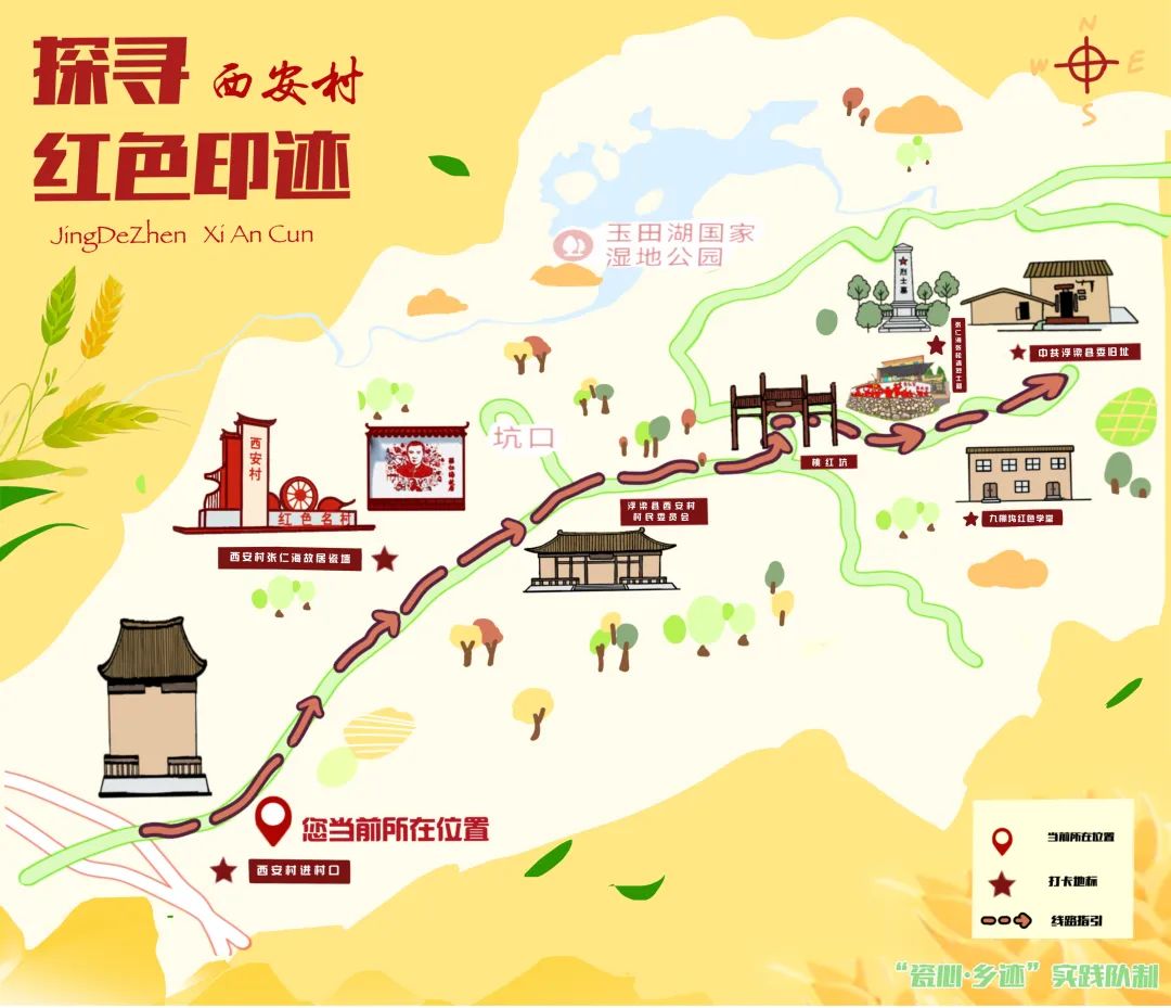 6月25日至7月23日,湘湖镇西安村,这座深藏于赣北群山中的江西省“红色名村”,迎来了一群特殊的“建设者”。景德镇陶瓷大学设计艺术学院“瓷心·乡迹”暑期社会实践队,继2024年用5万块青花瓷片在前程村铸就革命剪影墙后,今年将“以瓷述史”的匠心推向纵深。他们直面西安村红色旅游线路模糊、红色产业薄弱等痛点,以瓷艺创新与产业设计破局红色资源沉睡困境。