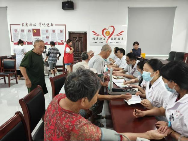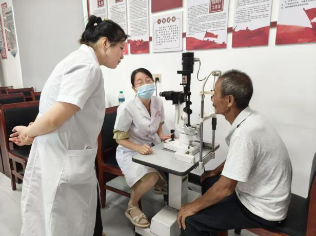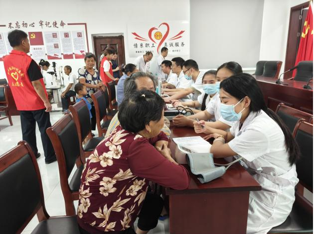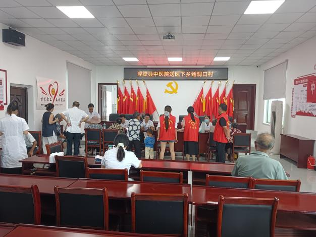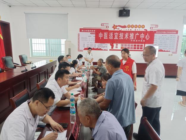 在洞口村党群服务中心一楼,来自县中医院的由省级专家带队的、由眼科、心血管科、骨科、外科、内科、妇科、中医科等多个科室的骨干医生组成的义诊团队,早早便布置好了登记区、诊疗区、宣教区,调试好了设备。前来体检的村民在志愿者的引导下,有序排队登记。