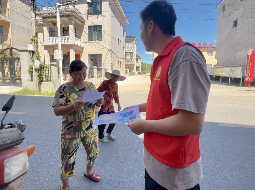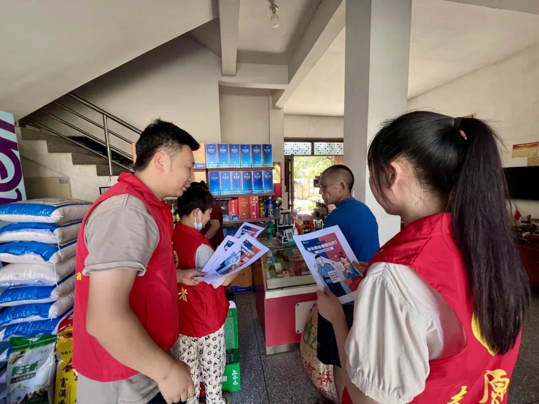 为了让安全知识覆盖到每一位村民,特别是行动不便或信息获取困难的老年群体,志愿者化身“行走的安全播报员”,走到村头巷尾、农家小院和小卖部,用亲切的方言向过往老年人、小店店主和顾客耐心讲解最新的诈骗手段和防诈反诈小知识,并发放色彩鲜亮的反诈宣传海报,在轻松的唠家常中让反诈知识自然而然地深入人心。兰田村李龙组村民吴大叔感慨:“你们讲的这些骗局,听着都吓人。我们种点粮、卖点菜攒钱不容易,确实得小心。今天这些话,句句都讲到了我们心坎上!”
