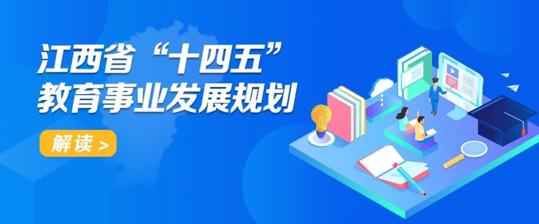 近日,江西省人民政府印发《江西省“十四五”教育事业发展规划》(点击查看),系统总结“十三五”发展经验,准确把握发展形势,科学谋划“十四五”发展思路、发展目标和发展任务,为推动建设高质量教育体系和加快建设教育强省擘画战略蓝图。教育是国之大计、党之大计。“十四五”时期,是我省和全国同步全面建设社会主义现代化的开局起步期,也是江西教育推进高质量跨越式发展新征程的关键期。教育事关人民福祉、事关社会公平、事关民族复兴,科学编制和实施江西省教育事业发展“十四五”规划,是我省教育系统总结经验,认真研判形势,科学谋划未来发展的重要契机,更是擘画战略蓝图、明确战略重点、提出战略举措的重要抓手,对于推动建设高质量教育体系,加快建设教育强省,实现2035年教育现代化的远景目标,助推江西高质量跨越式发展,具有十分重要的意义。《规划》制定总的要求是,以习近平总书记关于“十四五”规划编制工作的重要指示精神和十九届五中、六中全会精神为指导,紧紧围绕习近平总书记关于教育的重要论述和视察江西重要讲话精神,落实省委、省政府关于“十四五”规划编制的工作部署与要求,坚持顶层设计与问计于民相结合,坚持目标导向与问题导向相结合,坚持守正与创新相结合,立足我省教育实际,科学研判江西经济社会发展对教育的需求,回应百姓对教育发展的期待,充分考虑我省教育发展状况,确保党中央和省委各项决策部署在教育系统落地生根、开花结果。《规划》在制定过程中始终坚持以下基本原则:一是坚持立德树人。全面贯彻党的教育方针,坚持社会主义办学方向,完善立德树人体制机制,培养德智体美劳全面发展的社会主义建设者和接班人;二是坚持人民至上。秉持教育公益性,持续优化教育资源配置,促进教育公平,提升人民群众对教育的获得感和幸福感; 三是坚持高质量发展。树立质量为先理念,完善教育质量标准体系,推动各级各类教育高质量发展,不断提升教育综合实力;四是坚持改革创新。突出问题导向,运用系统思维,深入推进教育改革创新,努力破解教育发展难题;五是坚持服务大局。主动服务国家和江西重大发展战略,助推共同富裕战略实施,为我省经济转型升级、实现绿色崛起,厚植人才优势,培育发展动力。《规划》制定的主要目标是:到2025年,各级各类教育普及目标全面实现,教育改革发展成果更公平地惠及全体人民,教育服务经济社会发展的能力显著提高,社会关注的教育热点难点问题得到有效破解,多样化可选择的优质教育资源更加丰富,基础教育、职业教育、高等教育、继续教育有效衔接机制更加完善,服务全民终身学习的现代教育体系建设持续推进。到2035年,我省教育水平大幅提升,实现教育基本公共服务均等化和现代化,全面建成教育强省和人力资源强省。按照党的十九大对实现第二个百年奋斗目标作出的分两个阶段推进的战略安排,综合考虑未来一个时期国内外发展趋势和我省教育发展条件。《规划》围绕建设高质量教育体系这个主题,以习近平新时代中国特色社会主义思想为指导,深入贯彻落实习近平总书记视察江西重要讲话精神,以办好人民满意的教育为根本目的,立足新发展阶段,贯彻新发展理念,服务新发展格局,综合考虑我省省情教情和未来一个时期我省教育事业发展趋势,坚持问题导向、目标导向、需求导向,补短板、强弱项,扬特色、创一流,对“十四五”时期我省教育事业发展,作出系统谋划和战略部署。在征求意见的过程中,大家都提到了江西教育“十四五”规划应更多地体现江西特色。我省有着丰富的红色文化资源优势,近年来,我省在红色文化育人方面,取得了很多可喜成绩。因此在“十四五”时期,要继续充分发挥我省红色文化优势,深入挖掘红色文化资源,大力发扬井冈山精神、苏区精神、长征精神等红色精神,着力打造江西红色文化育人特色品牌。做足做深做特“红色文化育人工程”,在人才培育、社会服务、红色文化研究上进一步整合高校资源,将高校思想政治教育工作与红色基因传承紧密结合,在大学文化建设与育人实践中不断注入红色文化血液,构筑坚固的意识形态防火墙,为高质量完成立德树人根本任务提供深厚的文化底蕴和价值指引。一是九年义务教育巩固率。教育部提出2025年达到96%,而我省2020年就已经达到96%,考虑到“十四五”时期江西教育基本公共服务均等化水平将进一步提升,为此,将2025年目标值设定为96.5%,比国家目标值略高0.5个百分点。二是高中阶段教育毛入学率。教育部提出2025年超过92%,而我省2020年就达到92.5%,因此将2025年目标值设定为94%,比国家设定目标高2个百分点。江西教育发展坚持德育为先,以培养担当民族复兴大任的时代新人为着眼点,以学校、家庭和社会为载体,通过教育引导、实践养成、制度保障,构建德智体美劳全面培养的育人体系,全面落实立德树人根本任务。一是坚持用习近平新时代中国特色社会主义思想铸魂育人。全面加强新时代爱国主义和公民道德教育,深入开展社会主义核心价值观教育,将党史、新中国史、改革开放史、社会主义发展史教育贯穿立德树人全过程,构建常态化理想信念教育机制。二是深化思想政治教育。统筹推进大中小学思政课一体化建设,深化“三全育人”改革,构建小学培养道德情感、初
