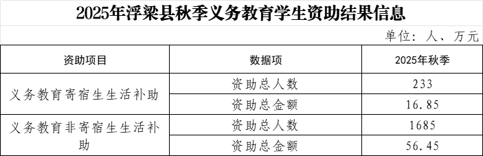 2025年浮梁县秋季义务教育学生资助结果信息