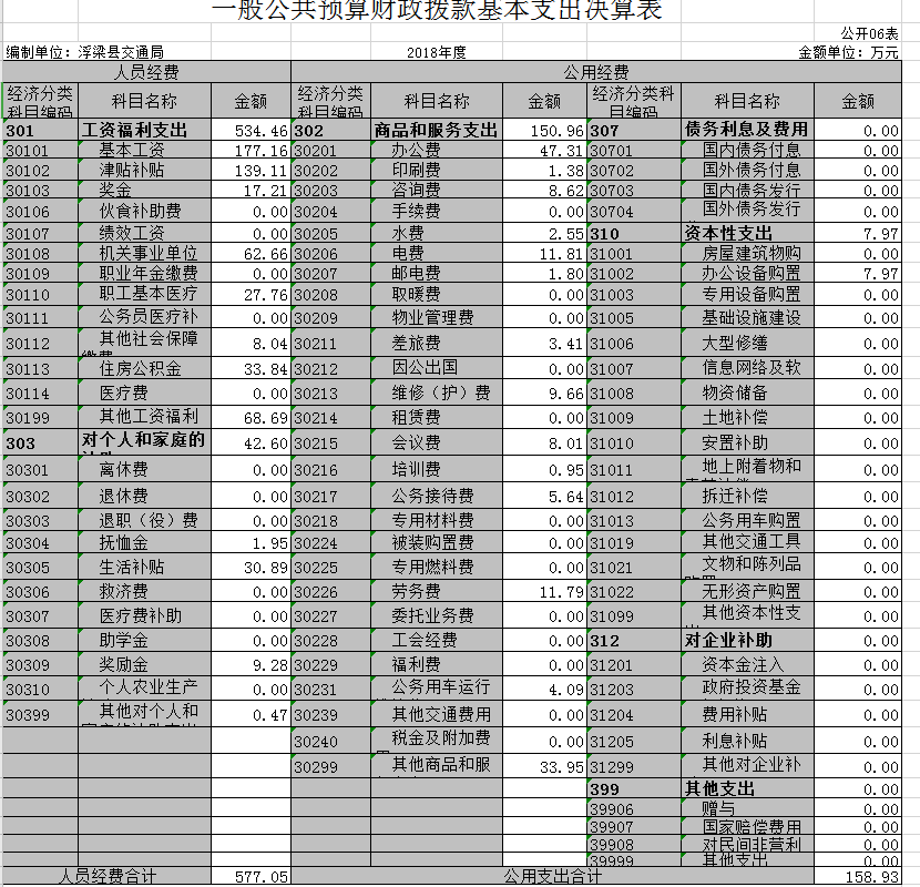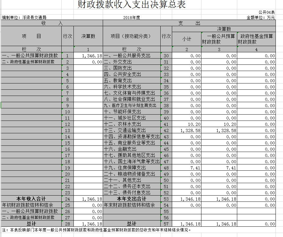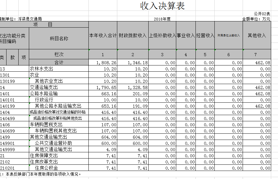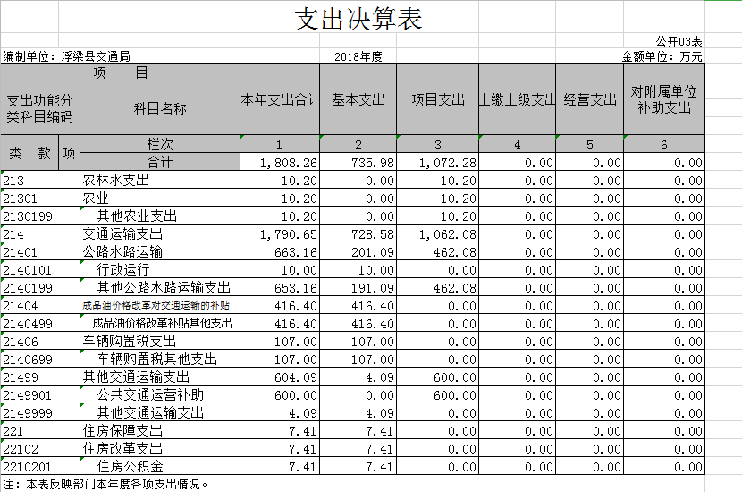 第二部分浮梁县交通运输局2018年度部门决算表
