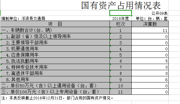 九、国有资产占用情况表