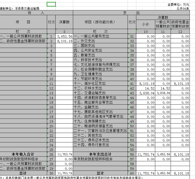 (三)交通运输支出年初预算数为563.23万元,决算数为3638.04万元,完成年初预算的645.9%。