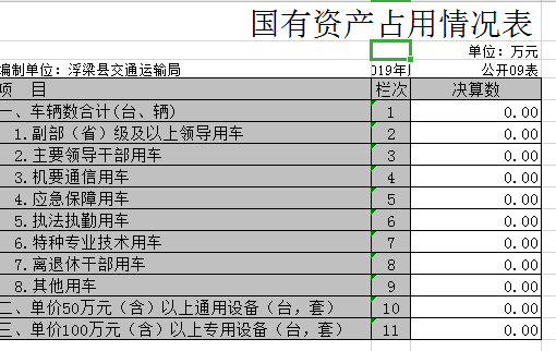 截止2019年12月31日,本部门共有车辆0辆,其中,副部(省)级及以上领导用车0辆、主要领导干部用车0辆、机要通信用车0辆、应急保障用车0辆、执法执勤用车0辆、特种专业技术用车0辆、其他用车0辆,其他用车主要是老旧资产,已无相关车辆手续的老旧车辆,待报废处理(下属单位);单位价值50万元以上通用设备0台(套);单位价值100万元以上专用设备0台(套)。
