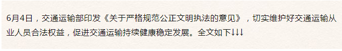 为切实维护好交通运输从业人员合法权益,促进交通运输持续健康稳定发展,现就严格规范公正文明执法提出以下意见。