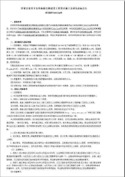 浮梁县瑶里至东埠旅游公路建设工程设计施工总承包招标公告