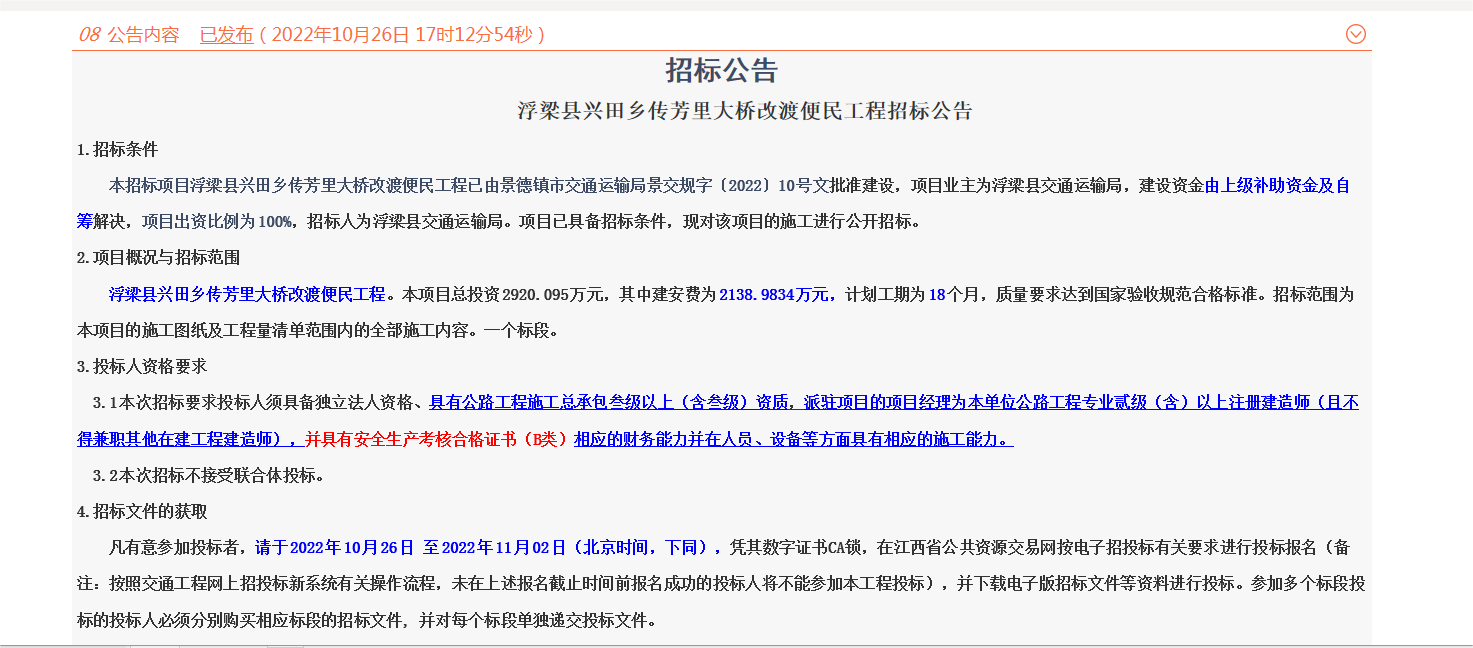 浮梁县兴田乡传芳里大桥改渡便民工程招标公告